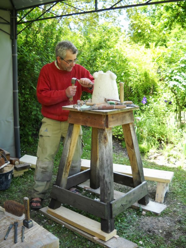 Odile invited to the 15-years existence of her garden. And as I have a shortage of garden visits and garden markets, we did a trip to Mainz-Gonsenheim. It was nice, that her family from France was in duty. Here her both brothers, working with stone.